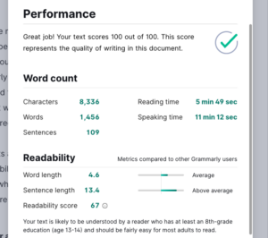 Performance Scores: Semantic SEO, Grammarly – Original Content Article